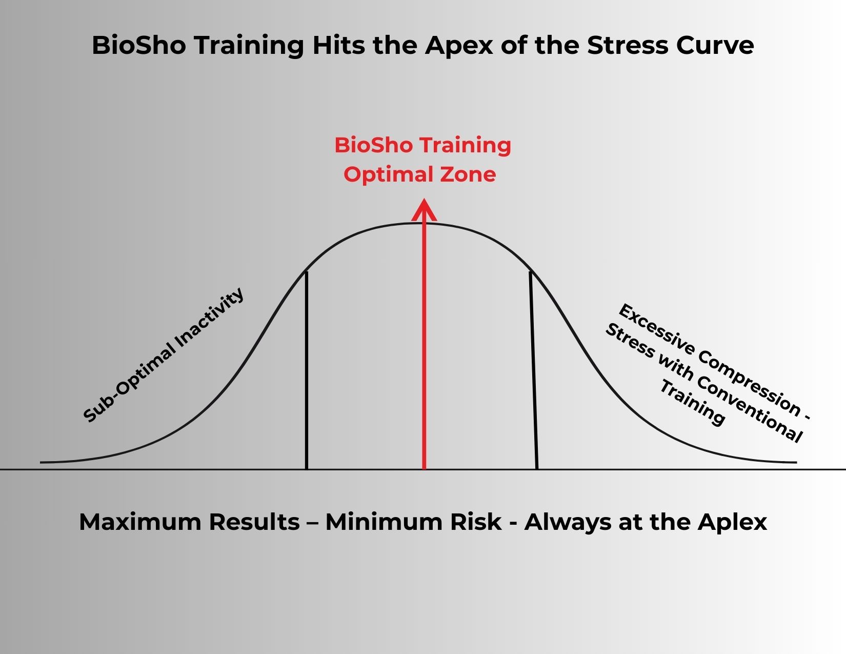Most training overshoots the stress curve. Biosho keeps you in the sweet spot — maximum results, minimal risk.