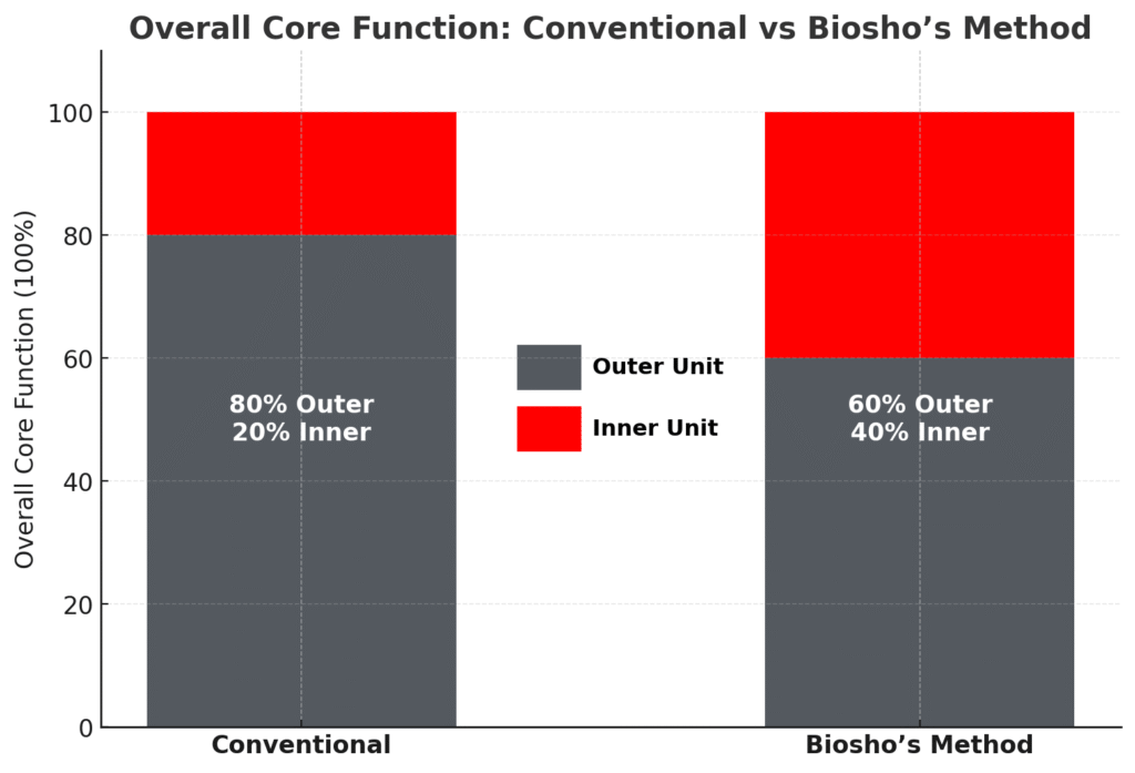 - Inner unit contribution doubles (20% → 40%) for golden-ratio stability and spine health.