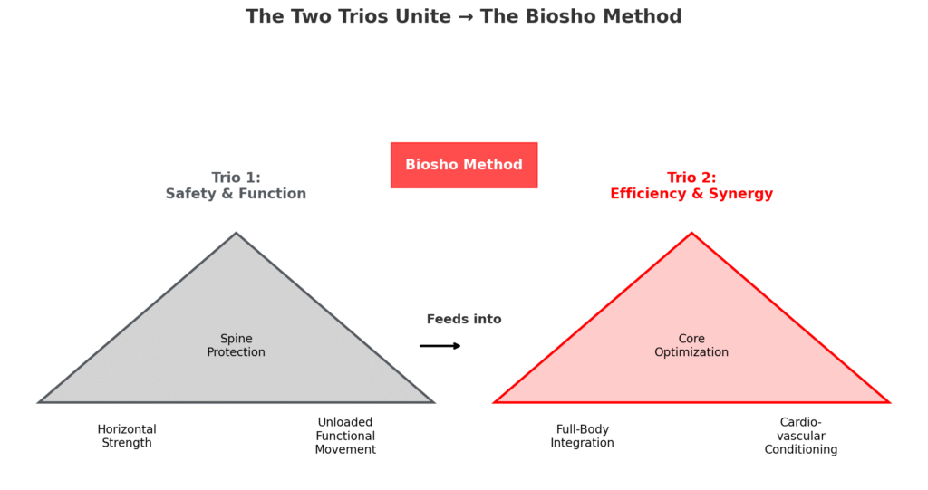 This foundation is what makes Biosho the world’s most efficient training modality — training the core, the entire body, and the cardiovascular system all at once.